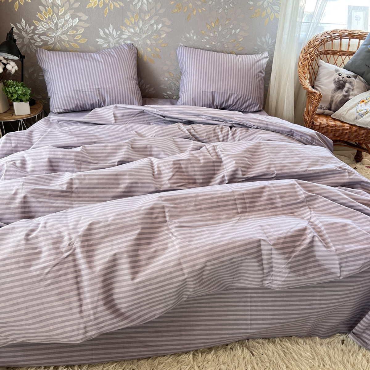 Створіть атмосферу справжнього затишку у вашій спальні. Цей комплект виготовлений з високоякісної натуральної бавовни, яка ніжно обгортає тіло, даруючи відчуття спокою та комфорту під час сну.