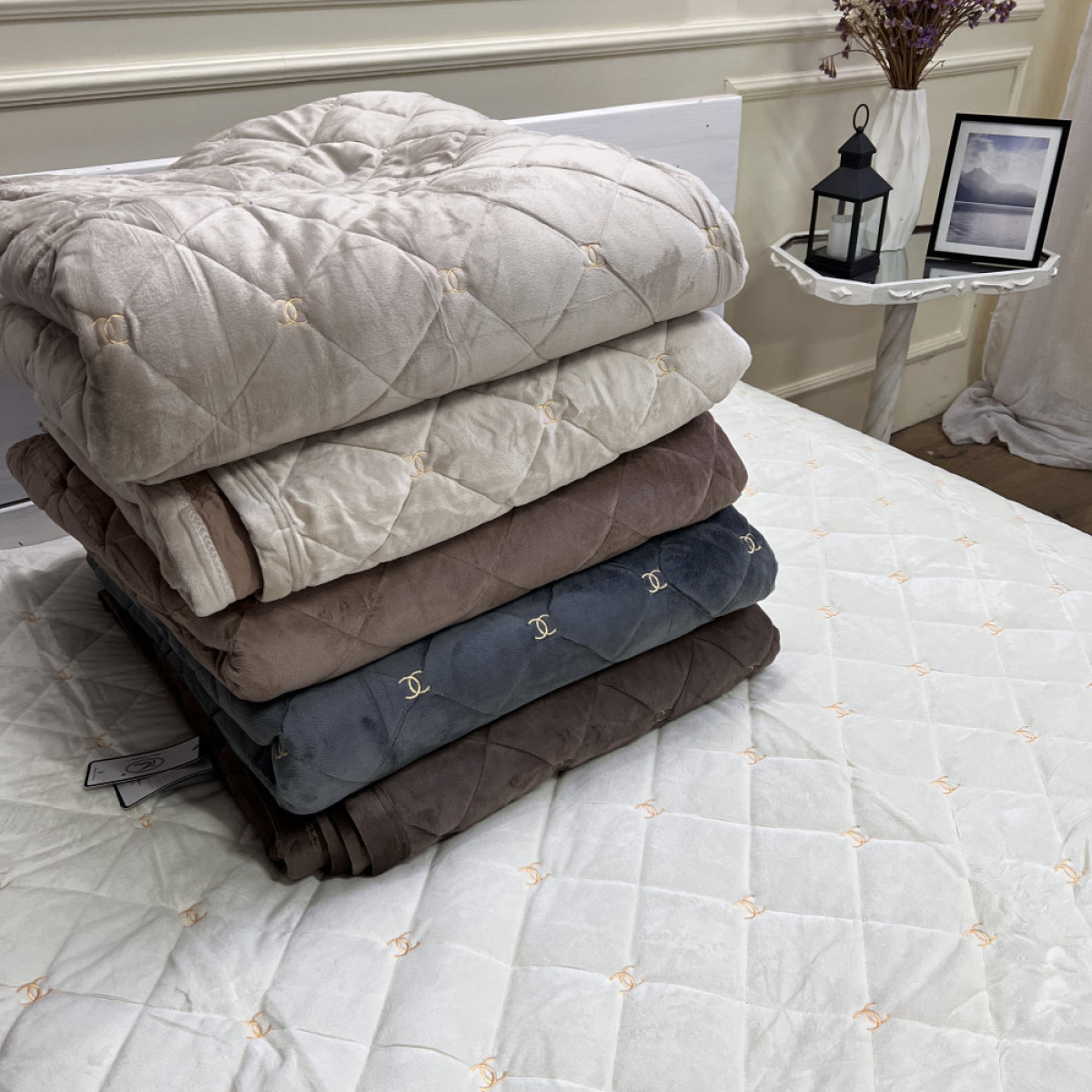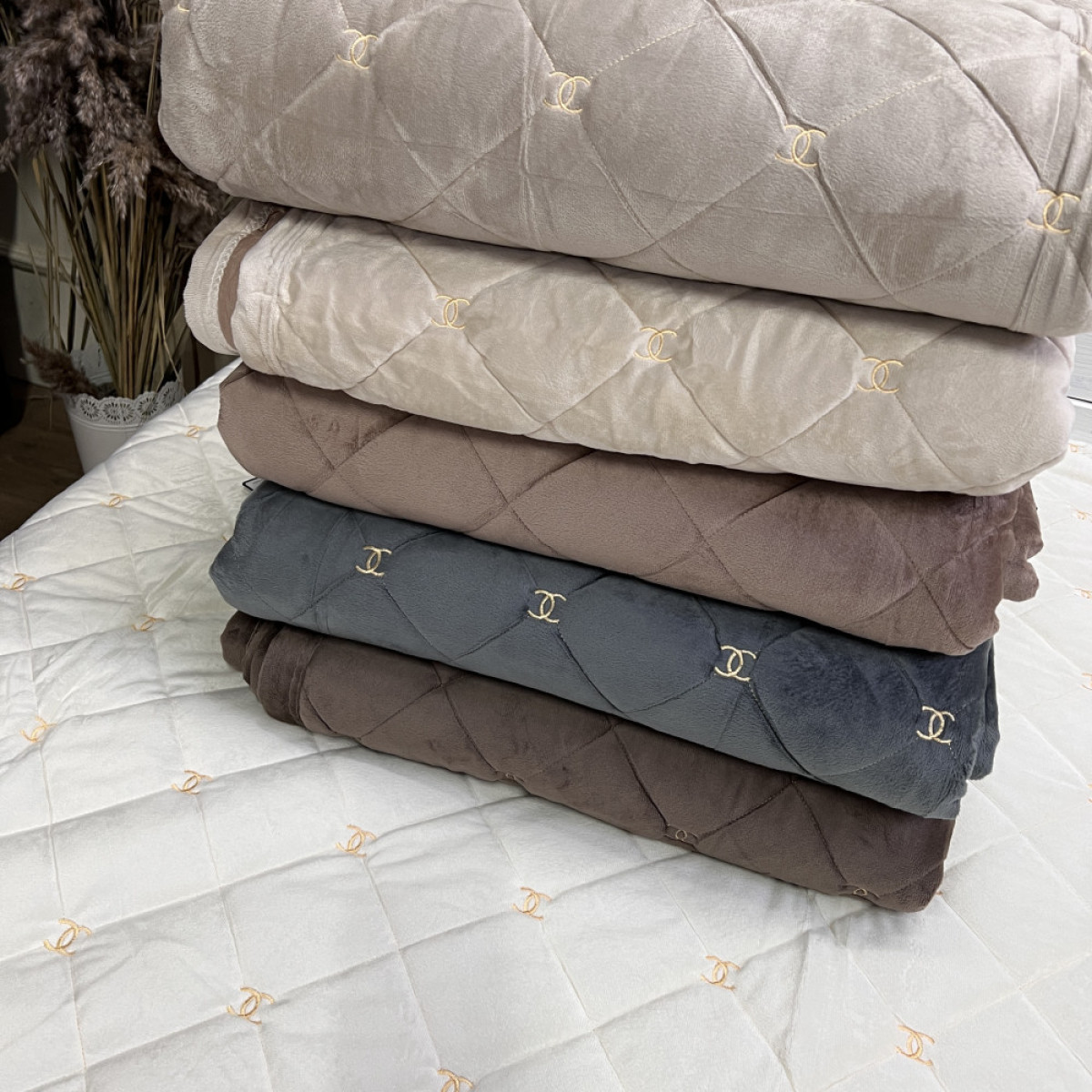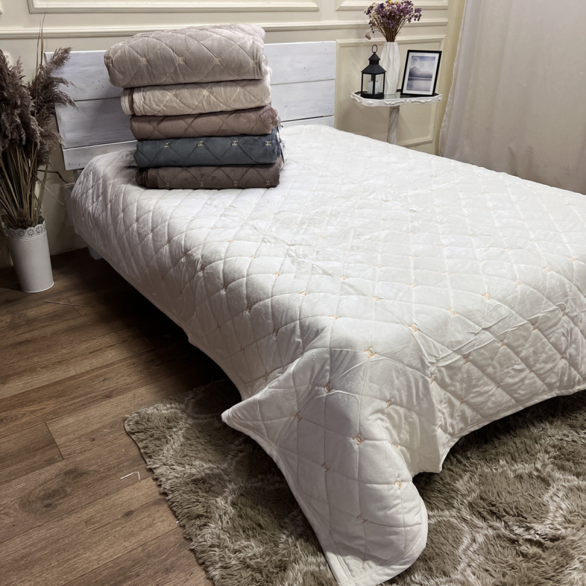 Велюрове покривало Шанель "Gold" Молоко
