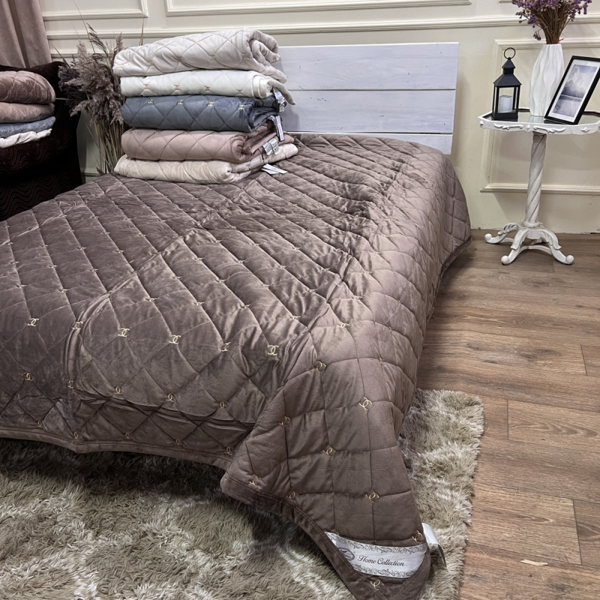 Велюрове покривало Шанель "Gold" Шоколад