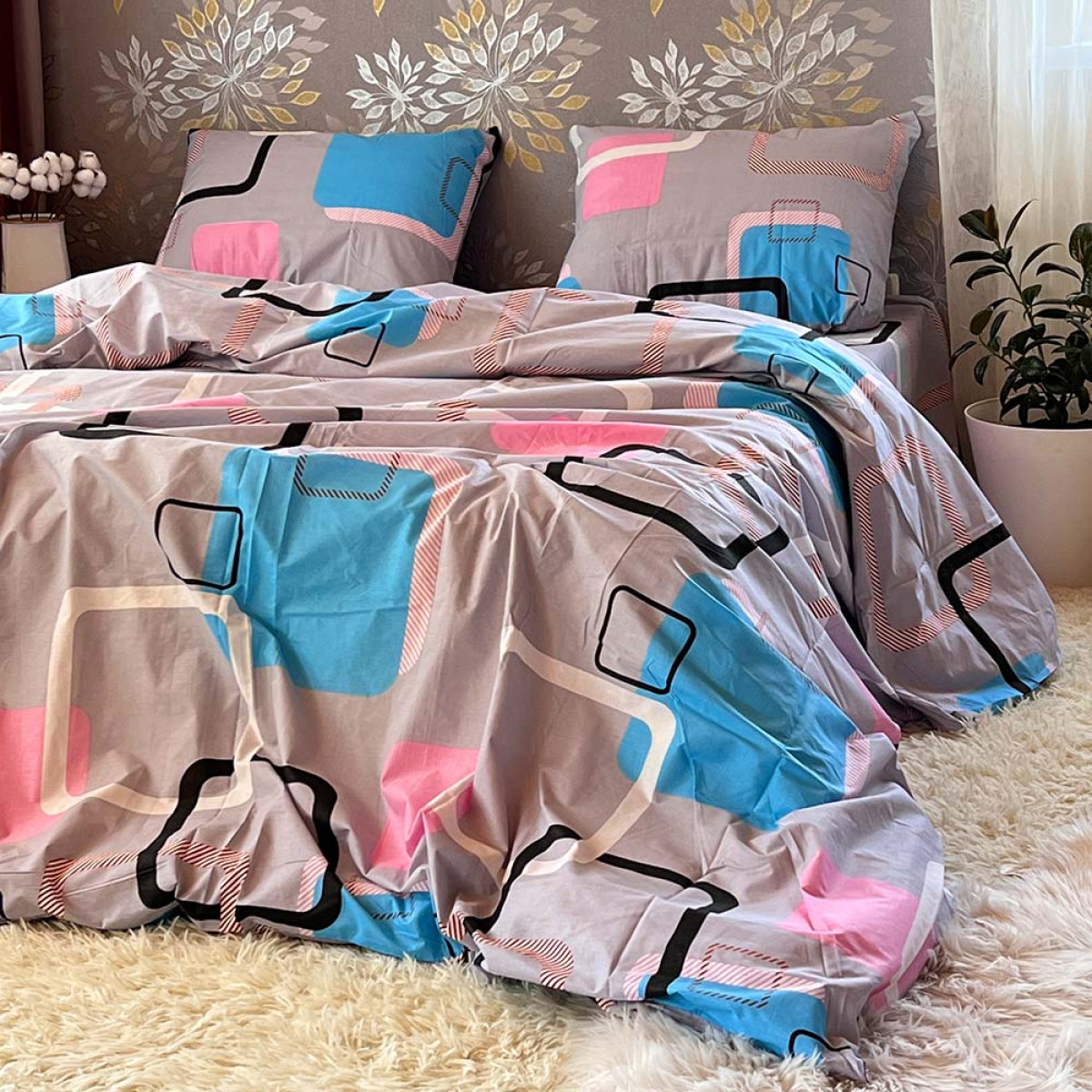 Створіть атмосферу справжнього затишку у вашій спальні. Цей комплект виготовлений з високоякісної натуральної бавовни, яка ніжно обгортає тіло, даруючи відчуття спокою та комфорту під час сну.