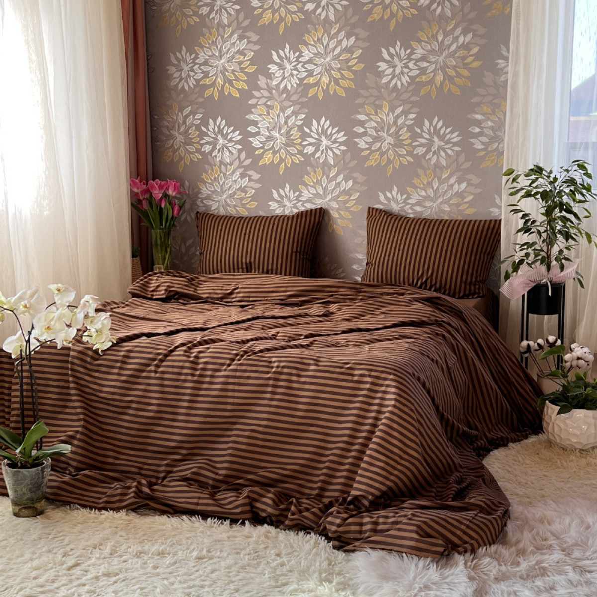 Створіть атмосферу справжнього затишку у вашій спальні. Цей комплект виготовлений з високоякісної натуральної бавовни, яка ніжно обгортає тіло, даруючи відчуття спокою та комфорту під час сну.