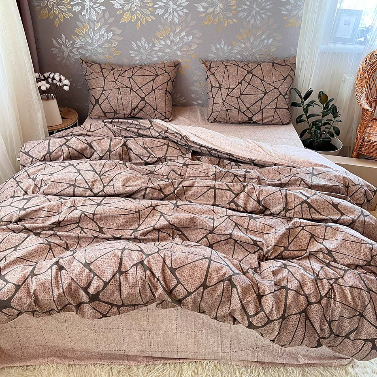 Створіть атмосферу справжнього затишку у вашій спальні. Цей комплект виготовлений з високоякісної натуральної бавовни, яка ніжно обгортає тіло, даруючи відчуття спокою та комфорту під час сну.