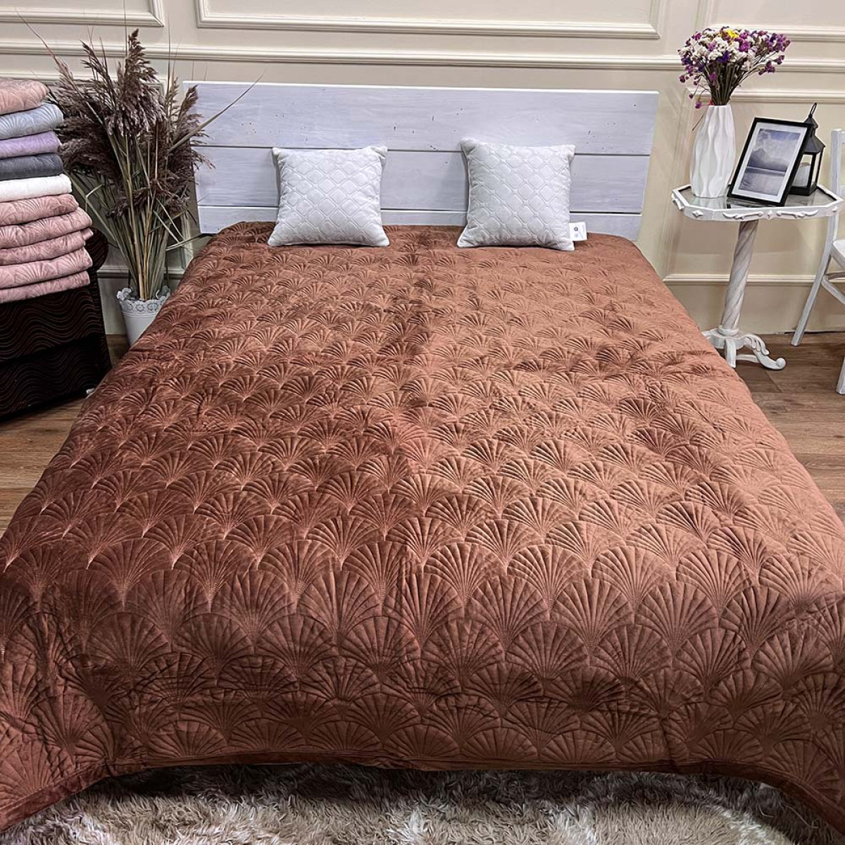Велюрове покривало 220/240 мушля шоколад