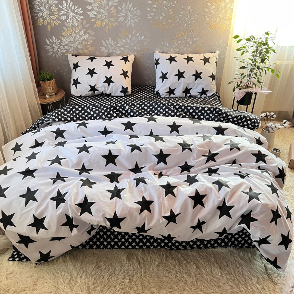 Створіть атмосферу справжнього затишку у вашій спальні. Цей комплект виготовлений з високоякісної натуральної бавовни, яка ніжно обгортає тіло, даруючи відчуття спокою та комфорту під час сну.