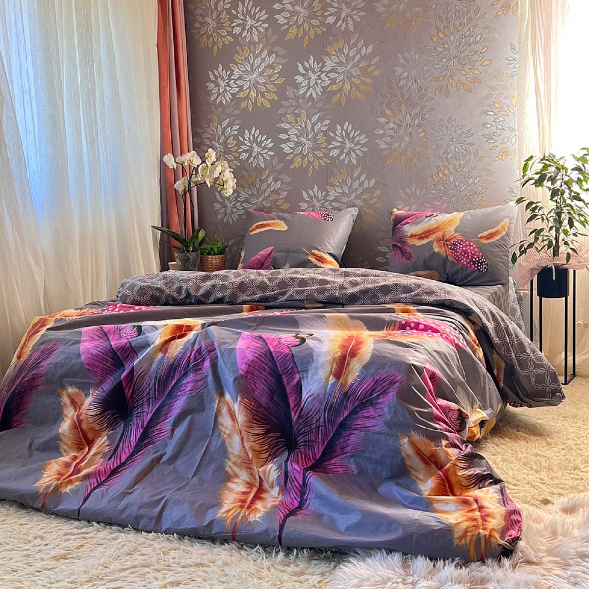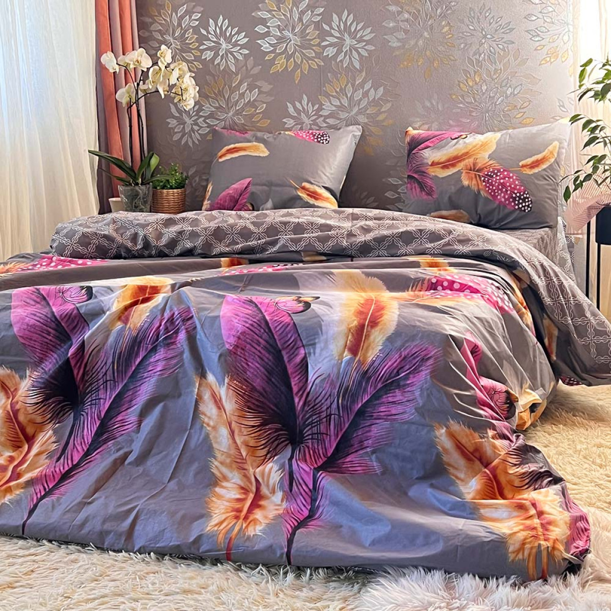 Створіть атмосферу справжнього затишку у вашій спальні. Цей комплект виготовлений з високоякісної натуральної бавовни, яка ніжно обгортає тіло, даруючи відчуття спокою та комфорту під час сну.