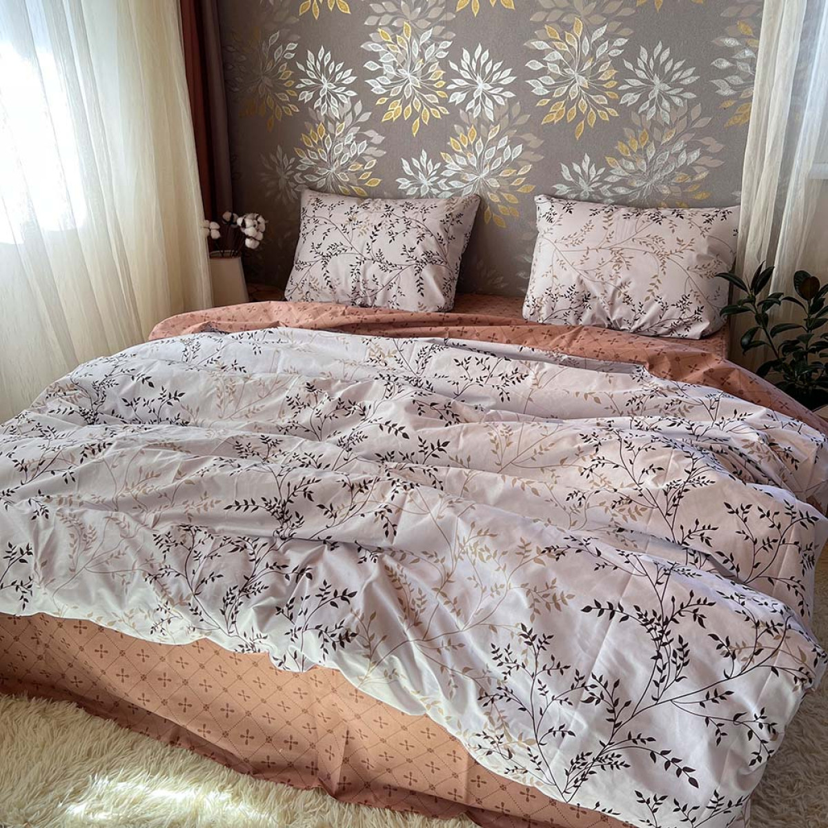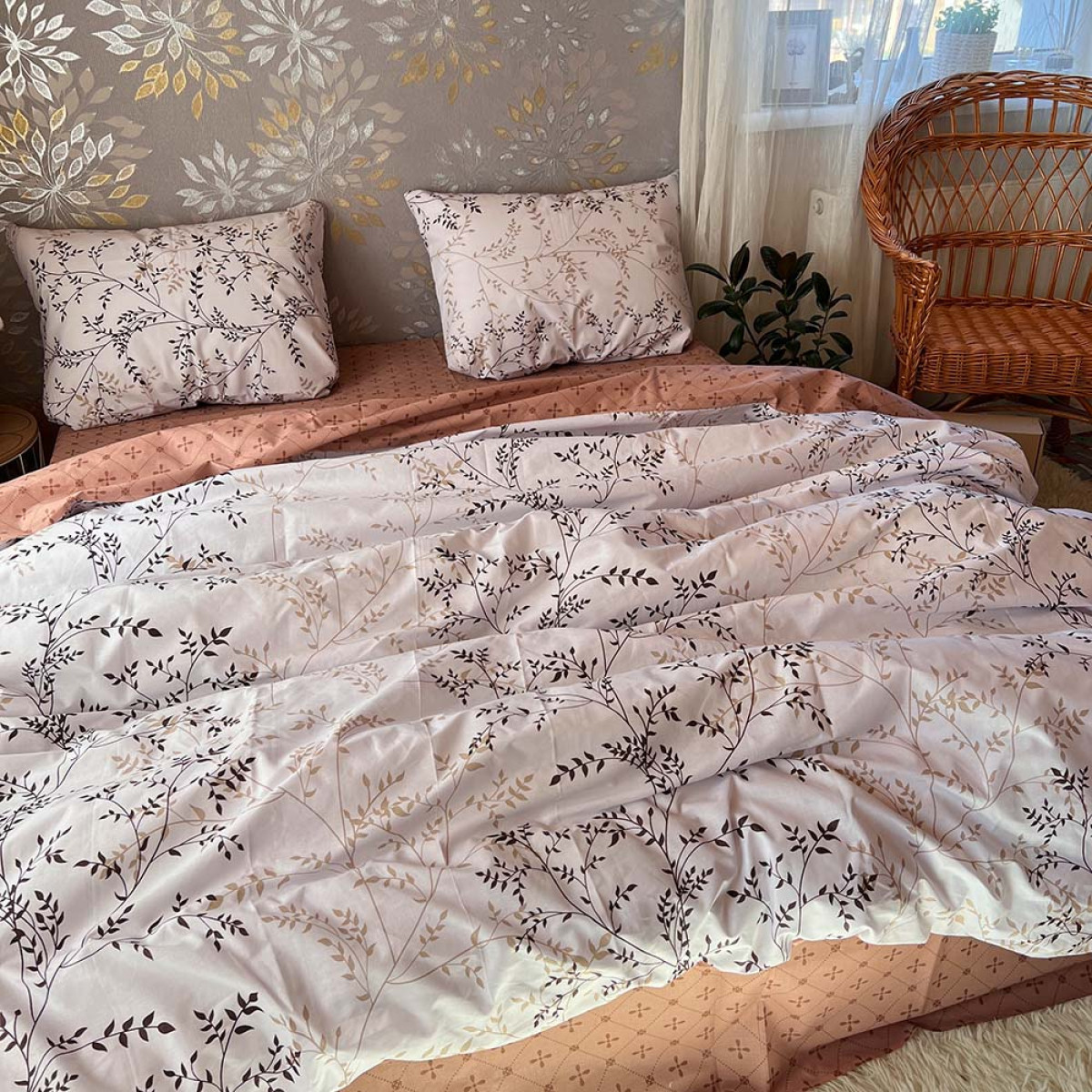 Створіть атмосферу справжнього затишку у вашій спальні. Цей комплект виготовлений з високоякісної натуральної бавовни, яка ніжно обгортає тіло, даруючи відчуття спокою та комфорту під час сну.