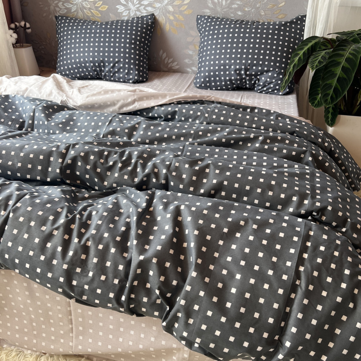 Створіть атмосферу справжнього затишку у вашій спальні. Цей комплект виготовлений з високоякісної натуральної бавовни, яка ніжно обгортає тіло, даруючи відчуття спокою та комфорту під час сну.