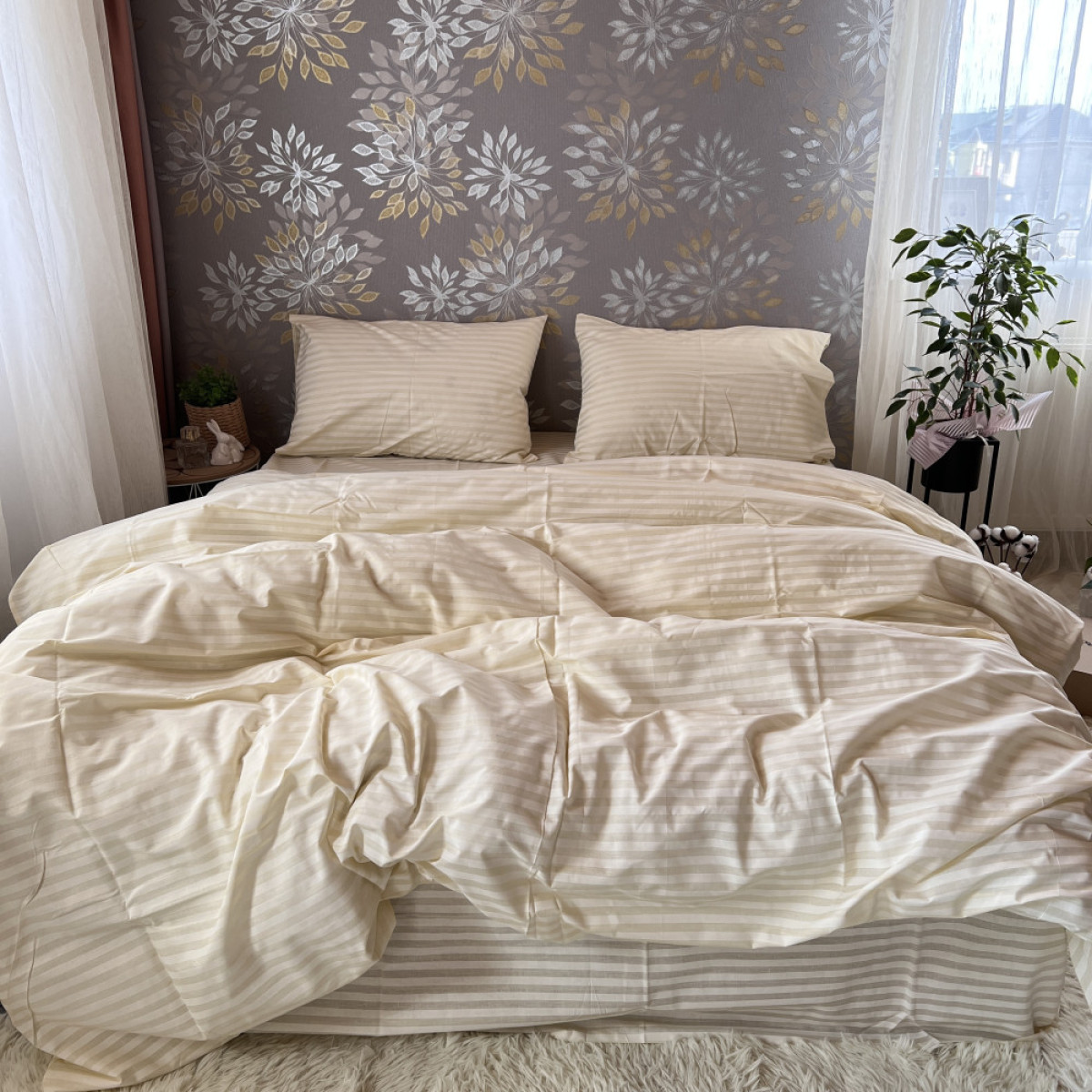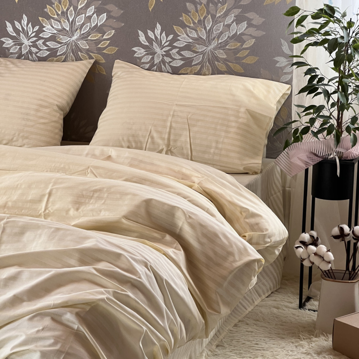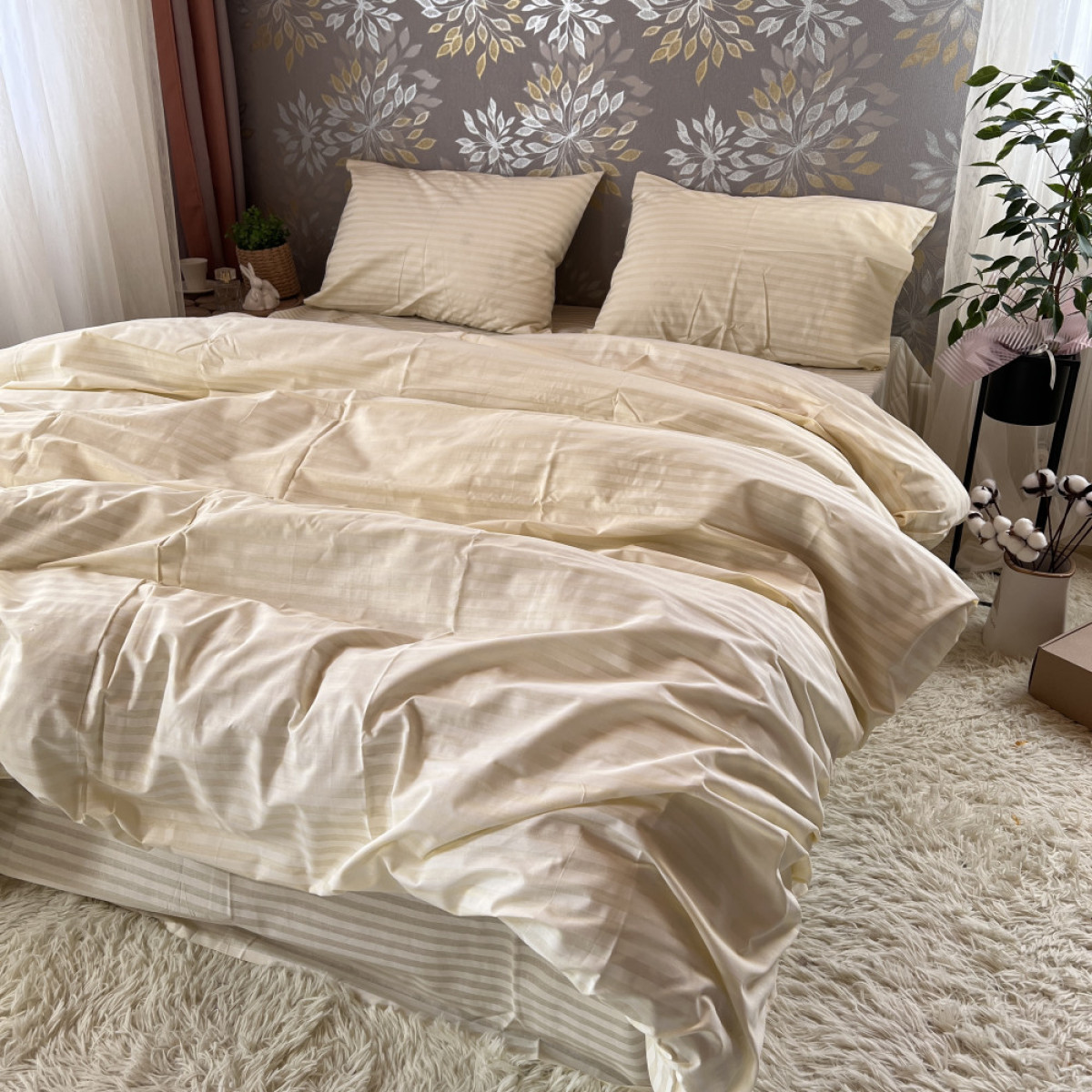 Створіть атмосферу справжнього затишку у вашій спальні. Цей комплект виготовлений з високоякісної натуральної бавовни, яка ніжно обгортає тіло, даруючи відчуття спокою та комфорту під час сну.